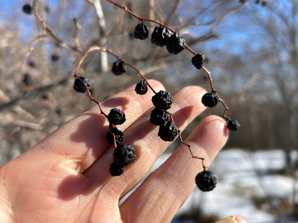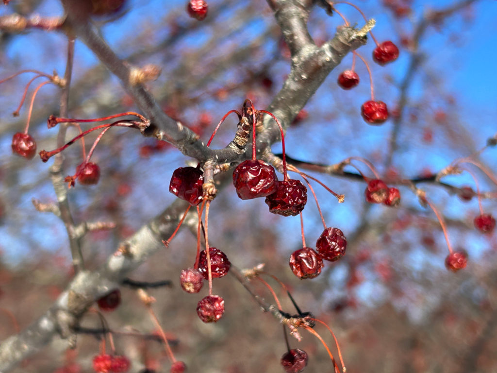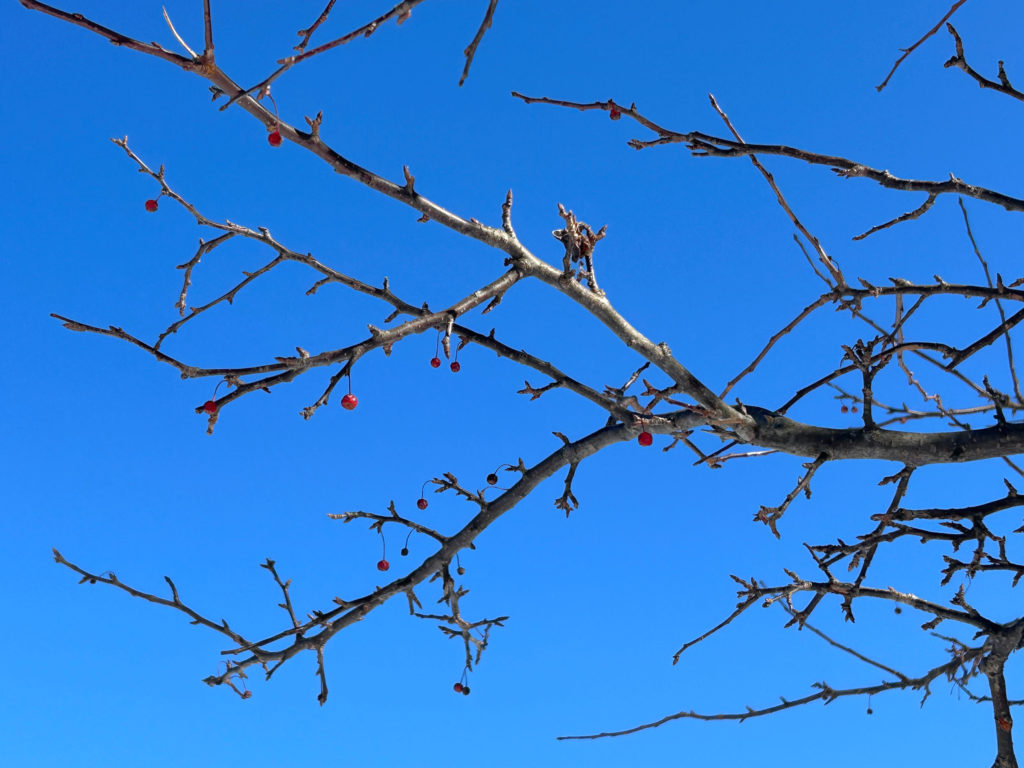 干しブドウのようなシワシワになった黒い実が、まだけっこう残っています。野鳥たちは後にとって置いているのでしょうか。
