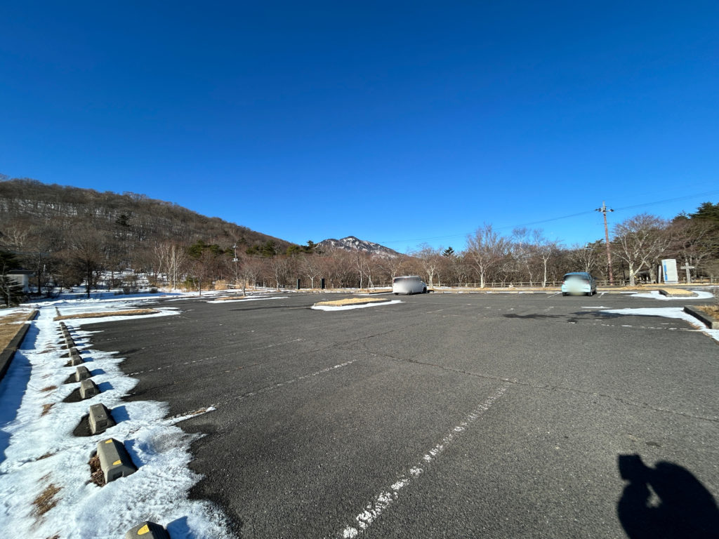 日射しが暖かく、駐車場の積雪はほぼ融けています。