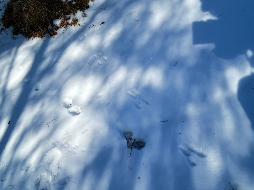 林内に入ると、ノウサギの足跡だらけ。