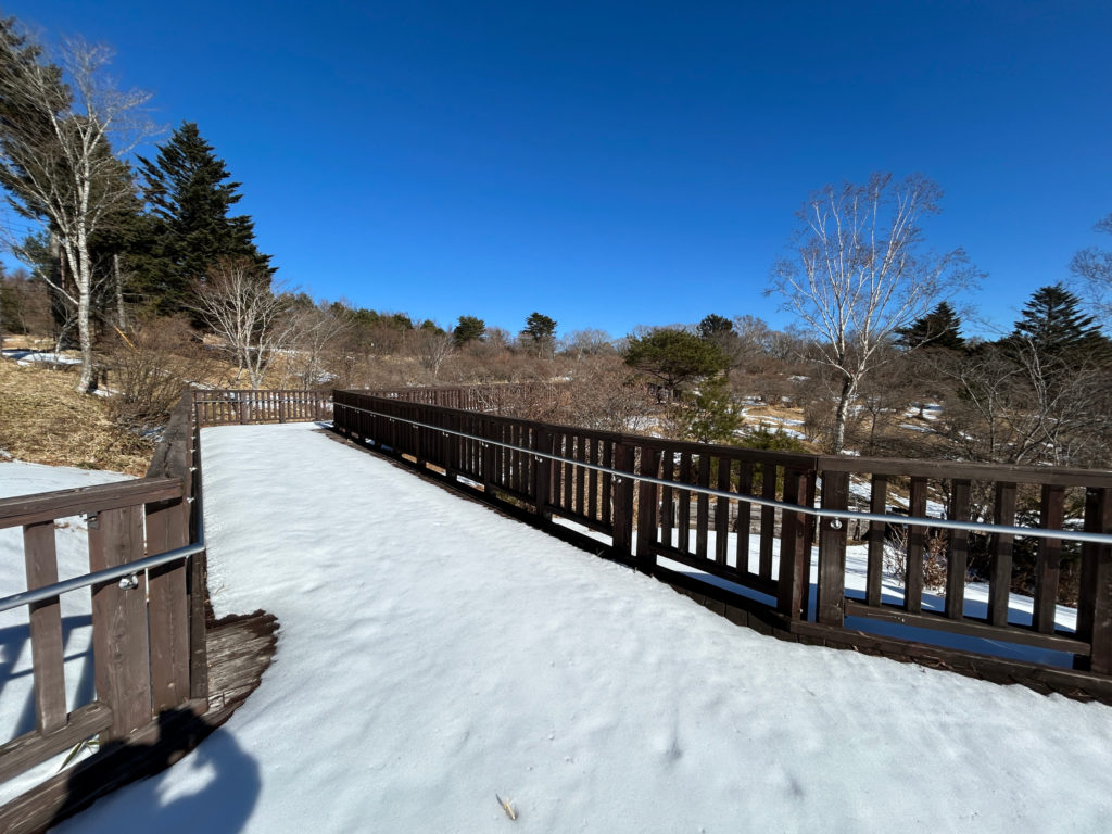 木道は雪が残っていますが、歩道はほとんど融けています。