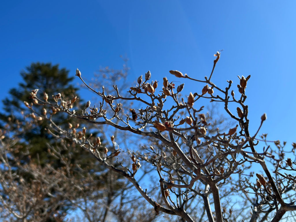 林内のふちでは、ヤマツツジの花芽も目立ってきています。
