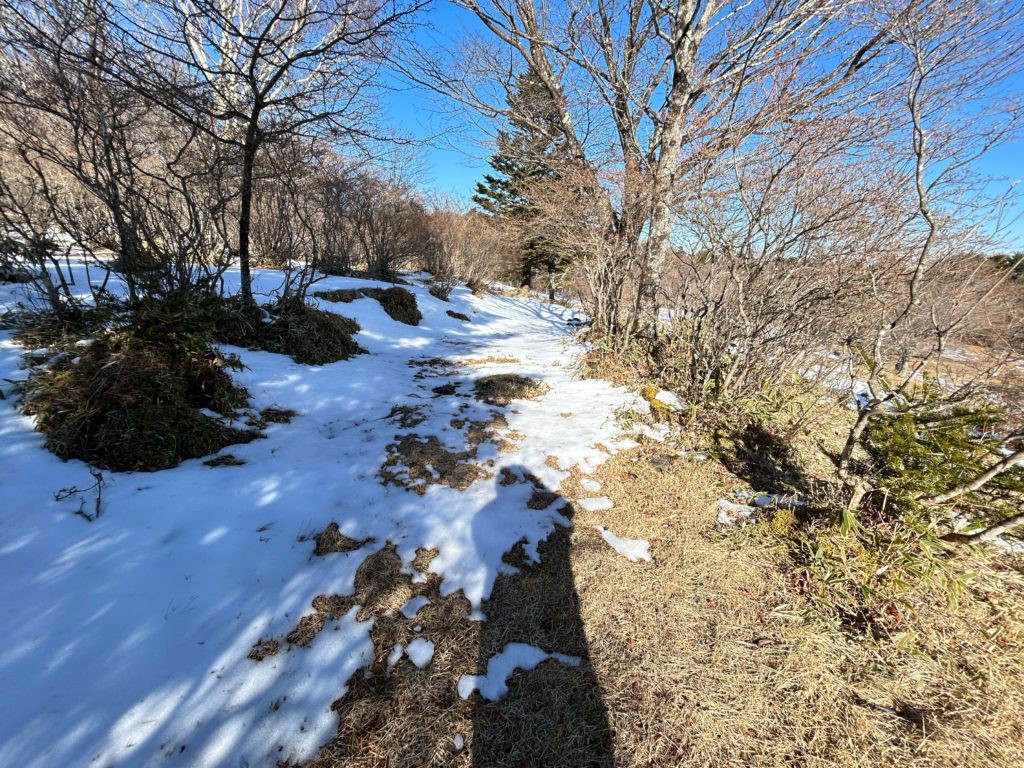 ここも、積雪は薄く、地面がほとんど見えています。